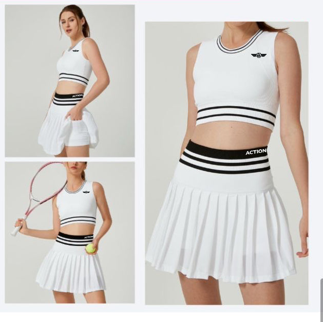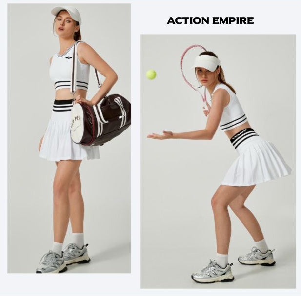 Step onto the court in commanding style with The Elite Match Set by Action Empire. Crafted from premium thick fabric for a structured, sculpted fit, this all-white tennis set blends timeless sport elegance with elite-level performance. Whether you’re serving aces or serving looks, this set keeps you confidently in control. The skort includes a convenient inner pockets for added functionality.